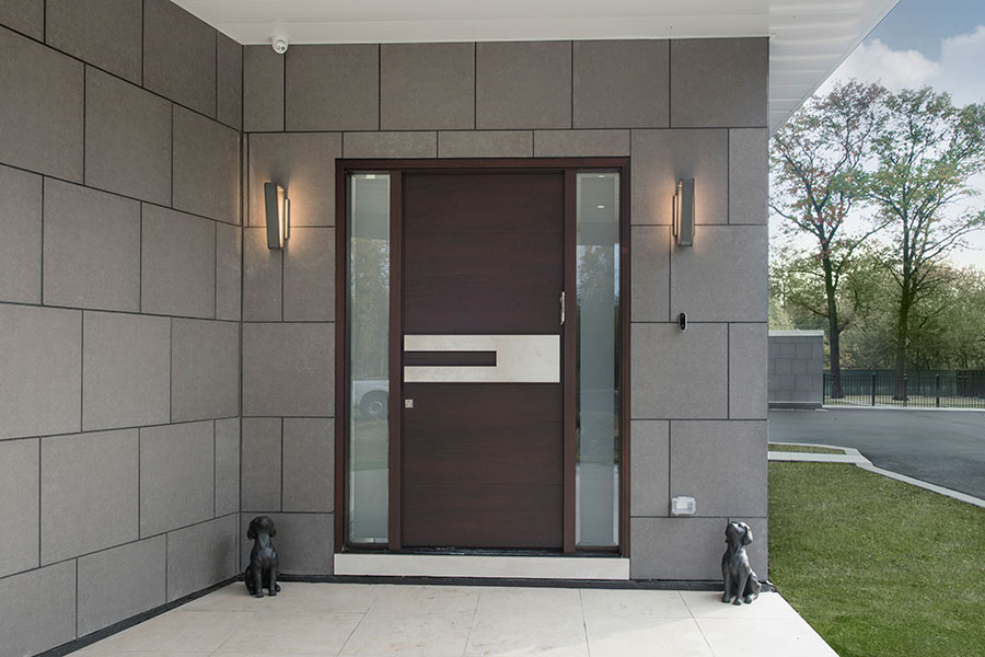 Aluminum Cladding: A thick metal panel with a powder coating finish applied to the exterior side of a door to protect it from sunlight, impact damage, and extreme weather conditions. This makes a door virtually maintenance free and gives it a vault-like feel. A door with aluminum cladding must be equipped with concealed hinges and a multipoint locking mechanism to support the additional weight of the metal. Aluminum cladding is especially beneficial in hot, sunny climates.