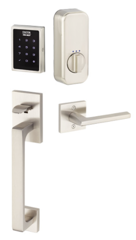 Smart locks allow for key-less entry options. This could be opened with a keypad or from your phone. The actual mechanism is a tubular lock, it’s only the operation that’s different. This is preferred by people who have young kids who aren’t yet responsible enough for keys, or frequent guests where keys would be inconvenient. The only smart hardware currently approved for Glenview Doors is the EMTEK Empowered system. It works with the Yale App which allows you to change the password remotely.